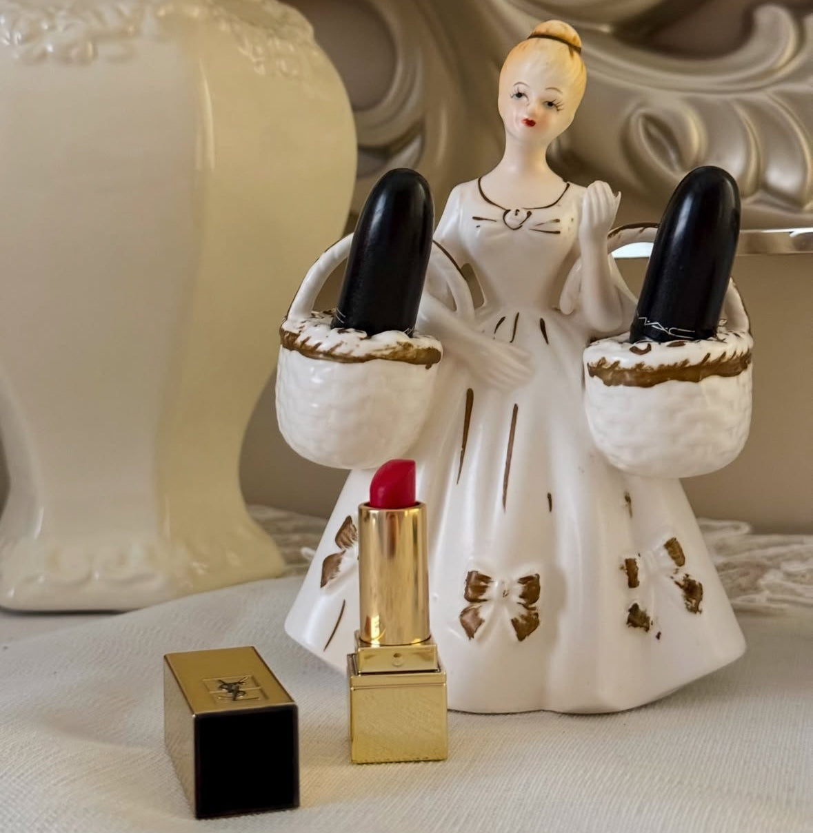 حامل أرواج فنتج على شكل سيدة تحمل سلة