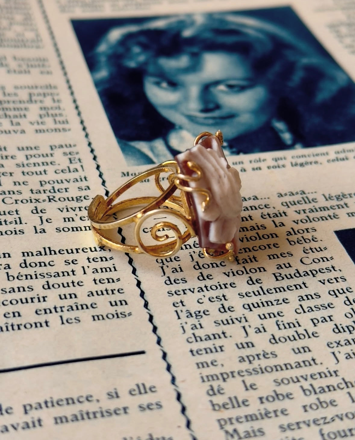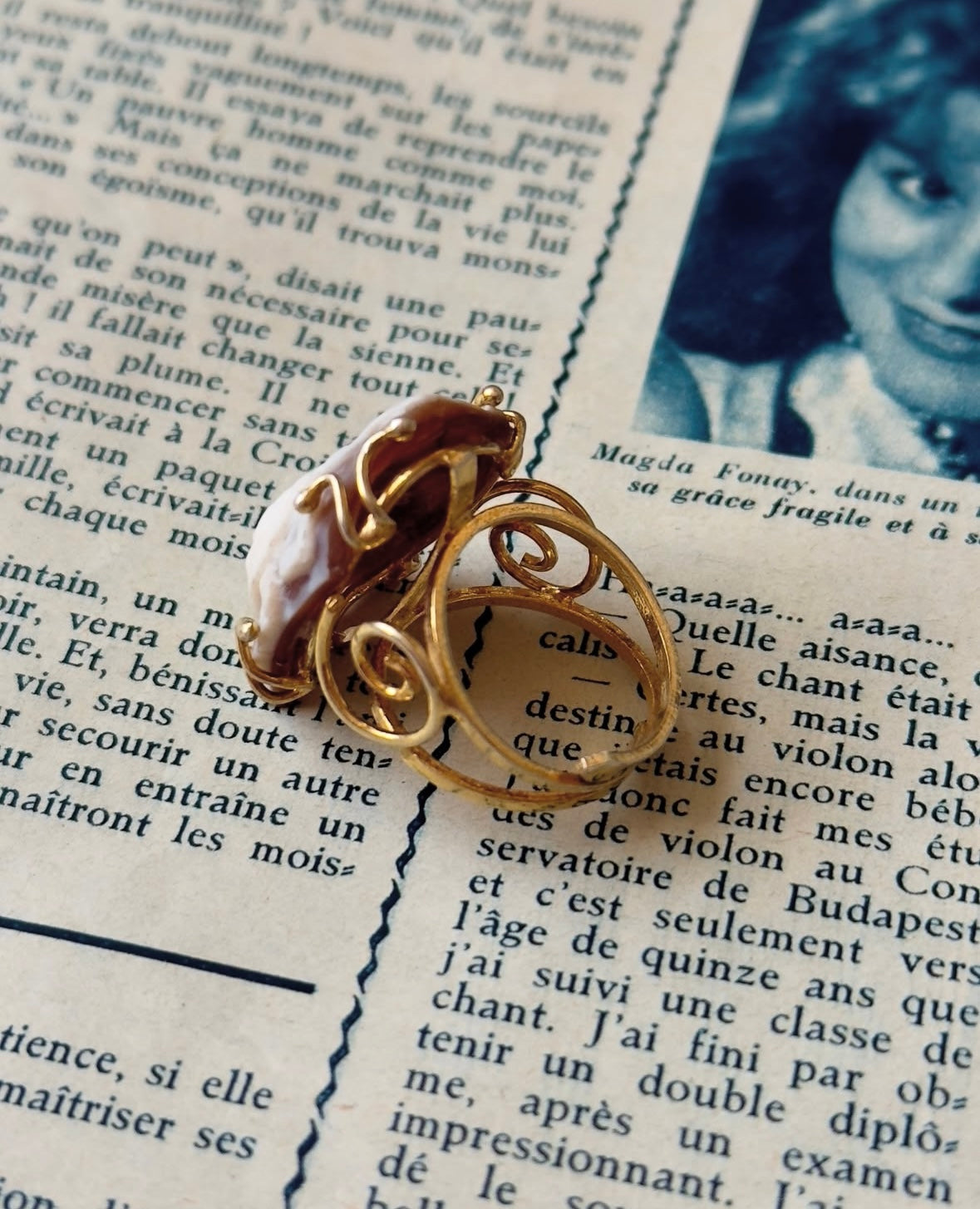 خاتم نسائي انتيك من الكاميو (الصدف) الطبيعي