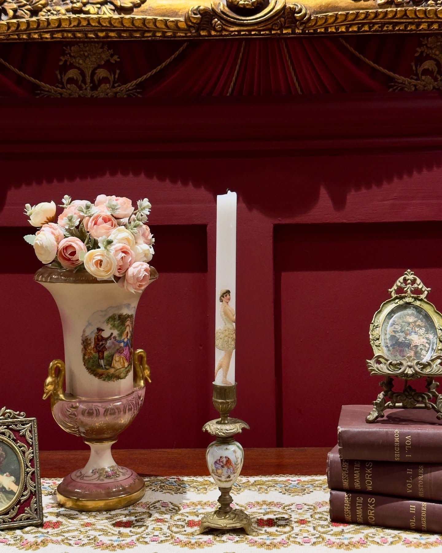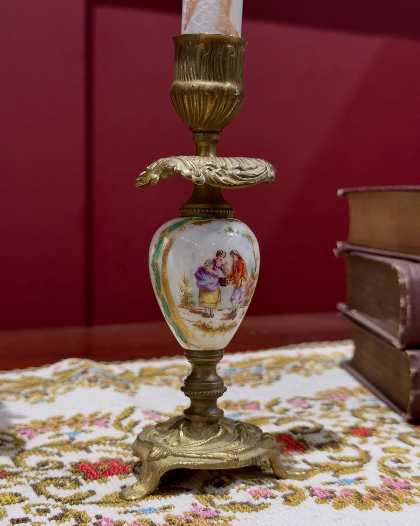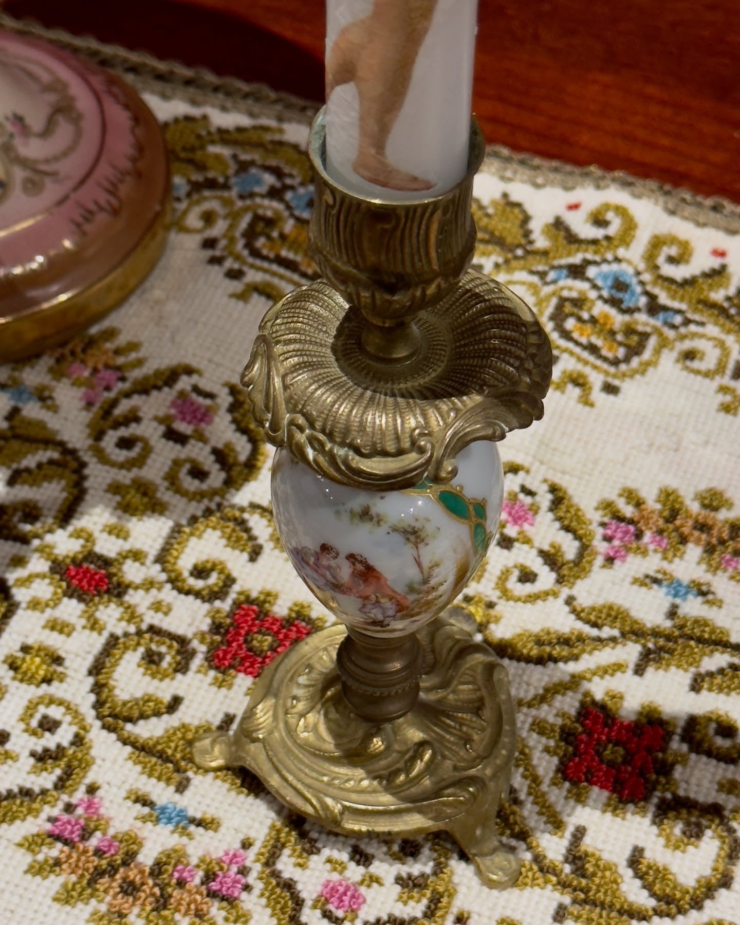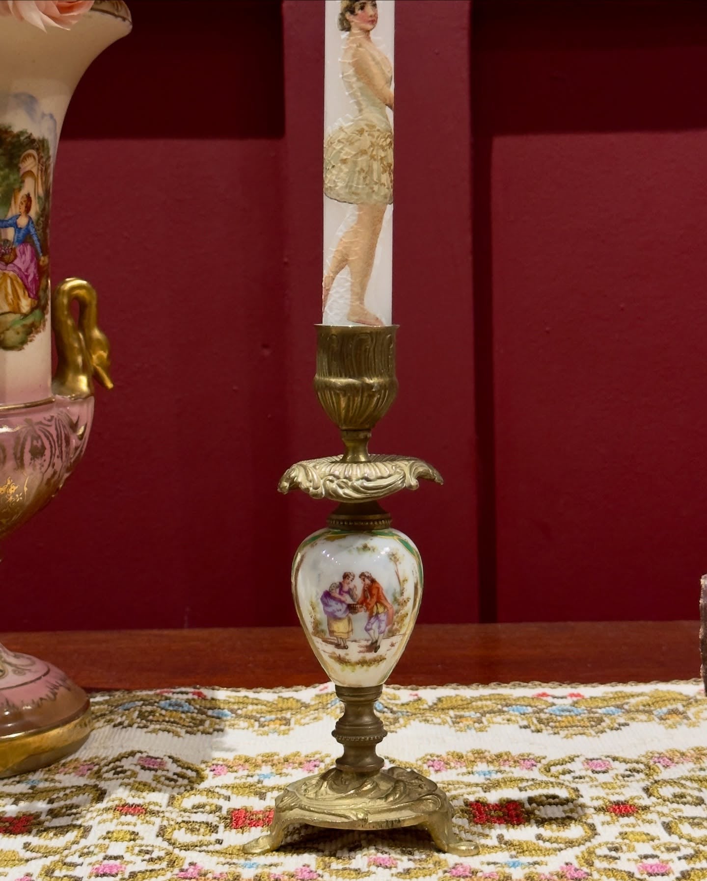 شمعدان فرنسي فنتج من النحاس والبورسلان