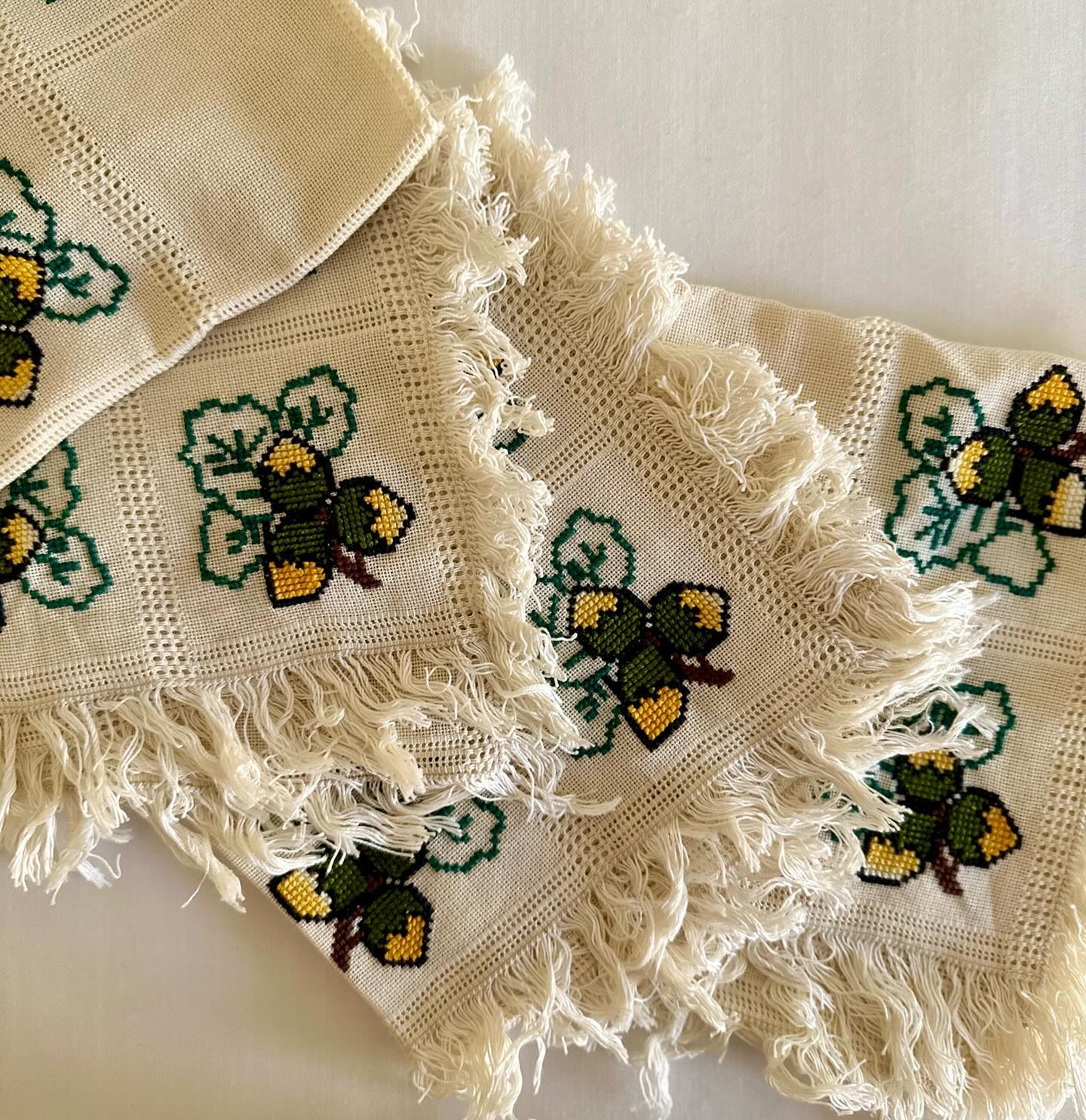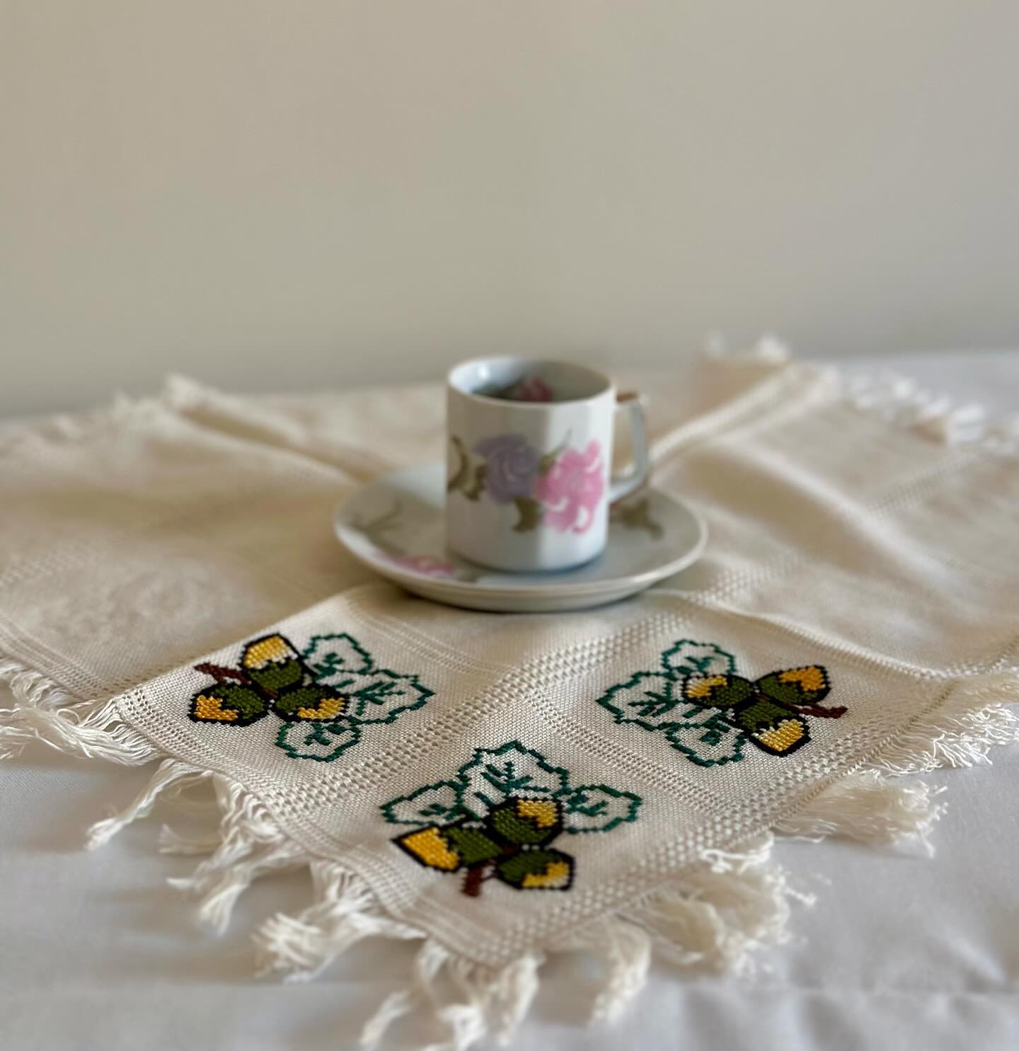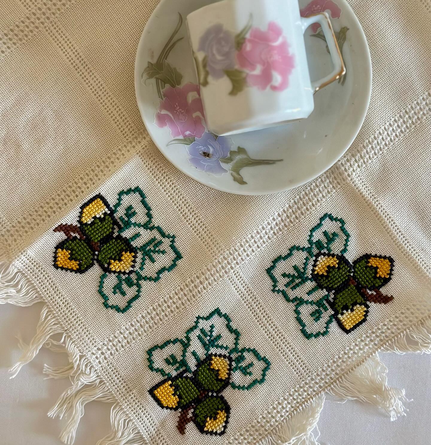 مجموعة من أربعة مفارش مطرزة يدوياً