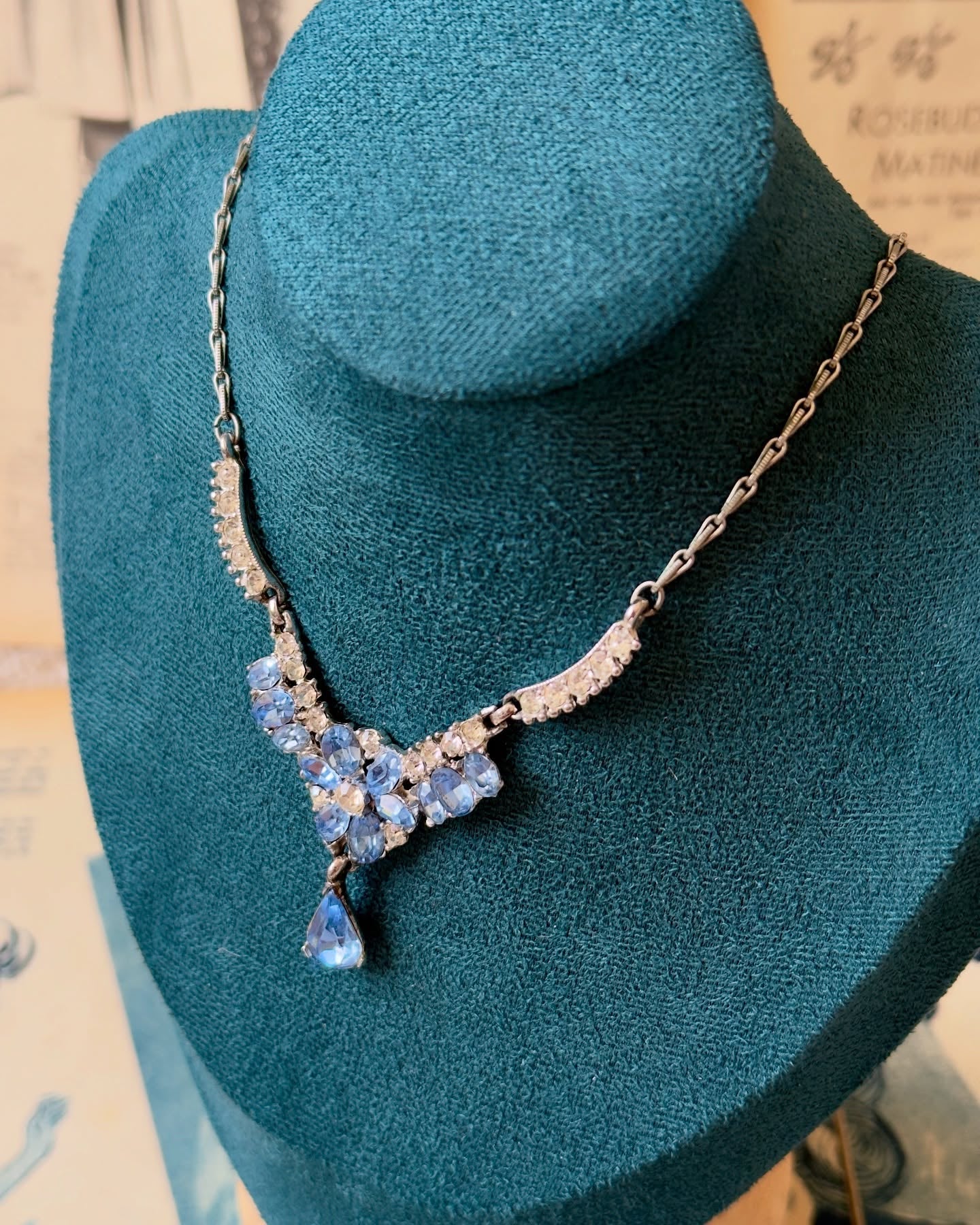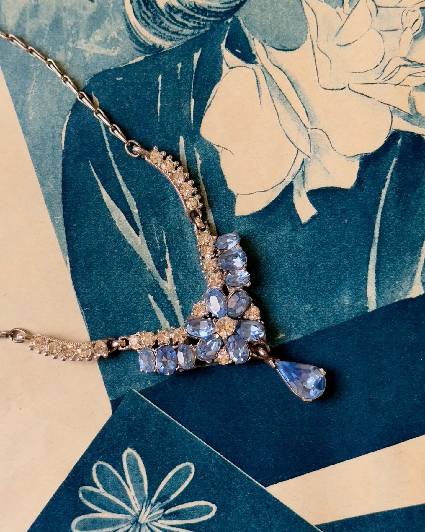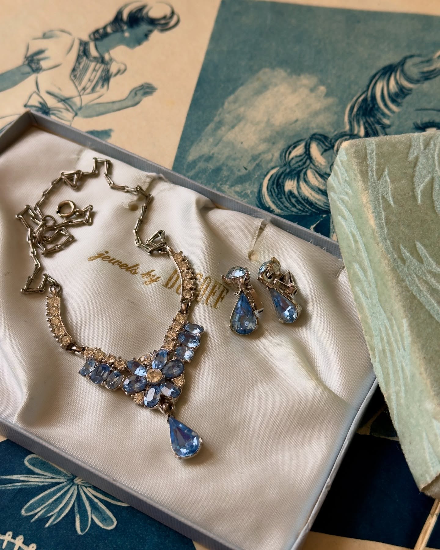 يتكون الطقم من قلادة بحجر اكوامارين الازرق