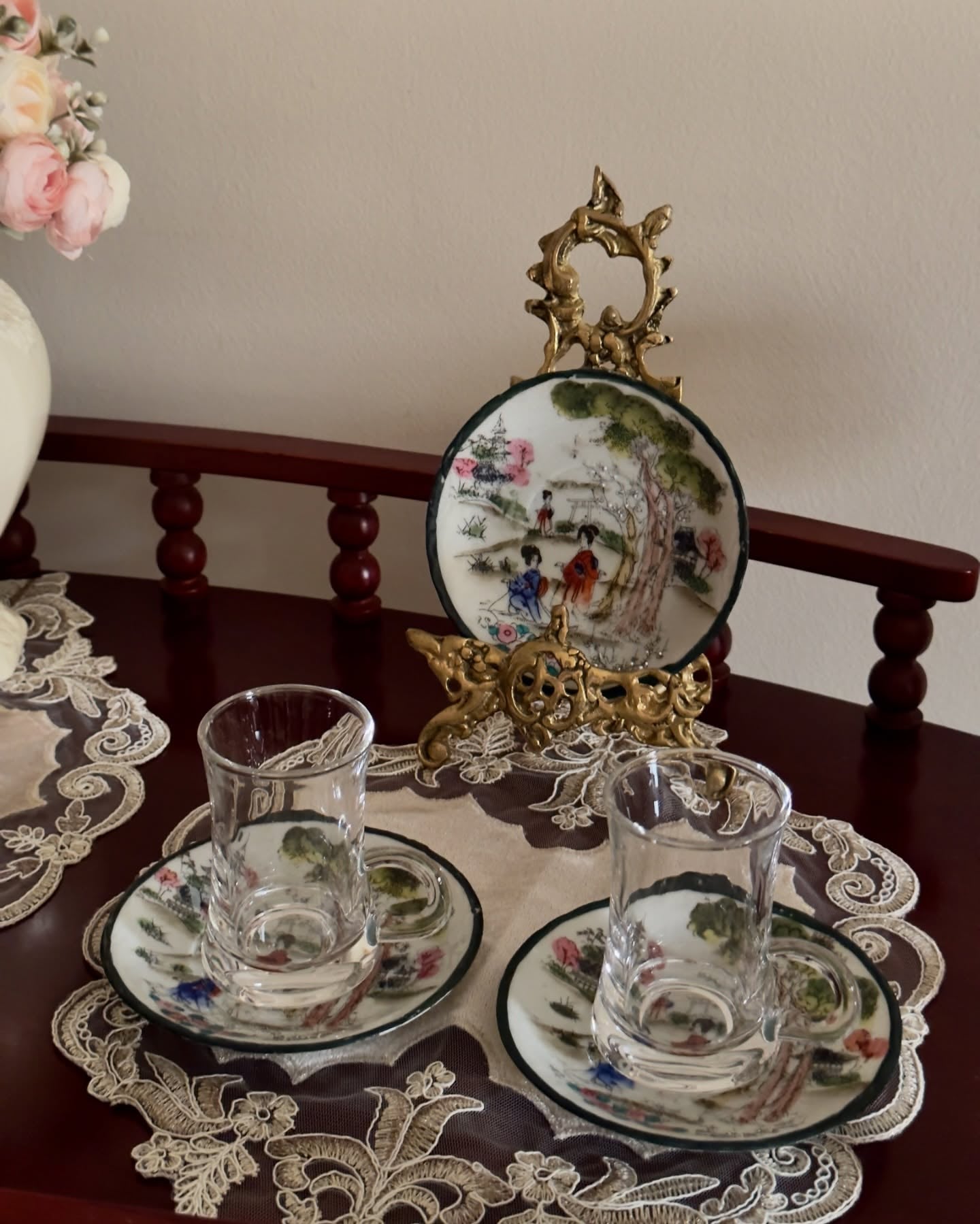 مجموعة ثلاثية من صحون/قواعد فناجين الشاي